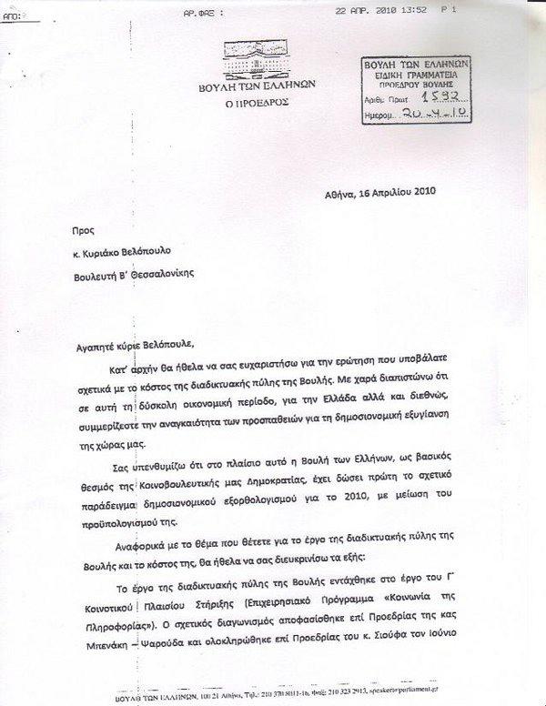 Ακολουθεί η απάντηση του Προέδρου της Βουλής: