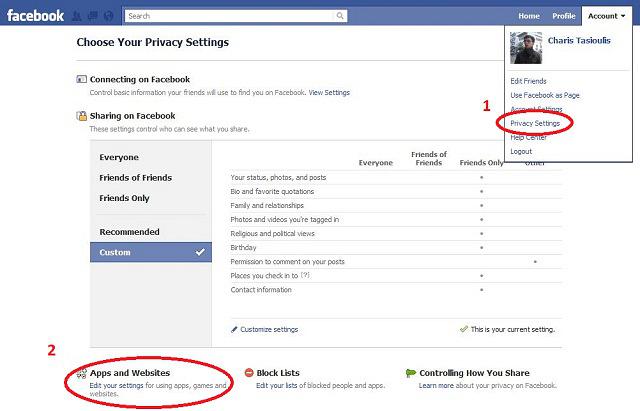 Σε περίπτωση που ήδη έχετε χρησιμοποιήσει την εφαρμογή, σας συνιστούμε να σβήσετε όσα posts έχουν δημιουργηθεί στο Wall σας, καθώς και να διαγράψετε όσες φωτογραφίες έχουν δημιουργηθεί και στις οποίες έχουν επισυναφθεί οι φίλοι σας. Στη συνέχεια, θα πρέπει να επιλέξετε τις "Ρυθμίσεις Απορρήτου" και μετά στο κάτω-αριστερό μέρος της οθόνης το "Επεξεργασία των Ρυθμίσεων", όπως ακριβώς φαίνεται στην παρακάτω εικόνα.