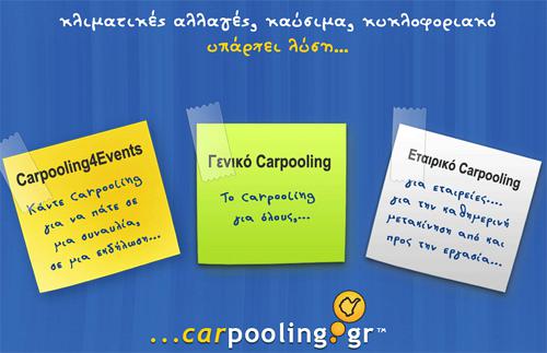 Μια ιδιαίτερη startup company υπέπεσε στην αντίληψη μου τις τελευταίες ημέρες. Πρόκειται για το Carpooling.gr, μια υπηρεσία η οποία καλεί όλους τους χρήστες να αφήσουν τα αυτοκίνητα τους στο σπίτι και να προτιμήσουν την ομαδική μεταφορά προς ένα προορισμό με ένα και μόνο IX.