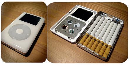 Λοιπόν έχουμε και λέμε, μετά το "The End of the Internet", εδώ έχουμε ακόμα ένα νέο που είναι κάπως ξεχωριστό. Ας αρχίσουμε λοιπόν, αν έχετε ένα παλιό, χαλασμένο iPod (όταν λέω παλιό εννοώ από τα πρώτα μοντέλα που είχαν και λίγο χώρο) και θέλετε να "καμουφλάρετε" την κακή συνήθεια σας να καπνίζεται, τότε μόλις σας βρήκαμε μία απίστευτη λύση. Το μόνο που έχετε να κάνετε είναι να ανοίξετε το iPod (με προσοχή όμως να μην του χαλάσετε την εξωτερική εμφάνιση), να αφαιρέσετε τα άχρηστα πλέον εσωτερικά εξαρτήματα και τέλος να το γεμίσετε με τα τσιγάρα σας. Βέβαια όπως μπορείτε να δείτε και από τις φωτογραφίες, δε χωράνε και πολλά εκτός άμα κάνετε slim για αυτό και πιο πάνω ανέφερα ότι συνιστώμενα μοντέλα iPod για αυτο το πείραμα είναι κάποιο απο τα πρώτα.