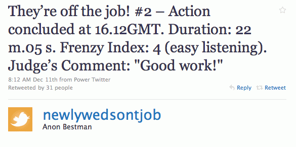 Απίστευτο και όμως αληθινό! Μετά από τα αεροπλάνα που κάνουν tweet, τώρα ήρθαν και τα κρεβάτια! O κουμπάρος ενός ζευγαριού έφτιαξε μια συσκευή η οποία έκανε tweet όταν το νεόνυμφο ζευγάρι έκανε "τρελίτσες" την γαμήλια βραδιά. Ο μηχανισμός λοιπόν υπέυθυνος για αυτό το τεχνολογικό "θαύμα" μετρούσε την πίεση των ελλατηρίων του στρώματος του κρεβατιού καθώς και την συχνότητα με την οποία συμπιεζόντουσαν.