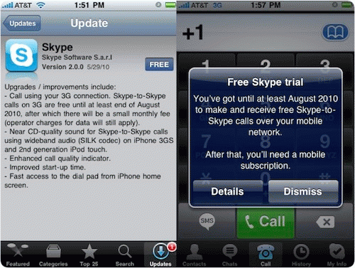 Υπάρχουν καλά και κακά νέα.. τα καλά νέα τα διαβάσατε. Tο 3G λειτουργεί πλέον κανονικά στην εφαρμογή  Skype για το iPhone, χωρίς κάποια επιπλέον χρέωση (πέραν των δεδομένων που μεταφέρετε).  Τα κακά νέα όμως είναι ότι.. είναι δωρεάν μόνο μέχρι τα τέλη Αυγούστου.