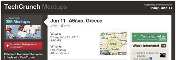 Νομίζω όλοι θα συμφωνήσουμε σε κάτι απλό. Το TechCrunch είναι δίχως αμφιβολία το πλέον καταξιωμένο και επιτυχημένο τεχνολογικό και επιχειρηματικό blog του πλανήτη. Μάλιστα, με περίπου 8 εκατομμύρια επισκέπτες τον μήνα, πιθανότατα είναι και ένα από τα μεγαλύτερα. Την ερχόμενη Παρασκευή (11 Ιουνίου) το αγαπημένο μας blog κλείνει τα 5 χρόνια ζωής και θέλει να το γιορτάσουμε! Πάνω από 280 TechCrunch Meetups σε όλο το κόσμο θα μαζέψουν φίλους της τεχνολογίας, της επιχειρηματικότητας και φυσικά του TechCrunch. Φυσικά η Αθήνα δεν θα μπορούσε να λείπει από το "μεγάλο party".