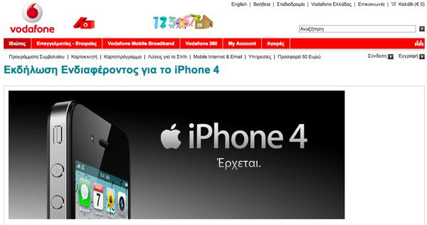 Από ότι φαίνεται Cosmote και Vodafone είναι έτοιμες να κονταροχτυπηθούν για ακόμα μια φορά. Μήλον της Έριδος αυτή τη στιγμή είναι το iPhone 4. Τη προηγούμενη εβδομάδα έγραψα πως η Vodafone ανακοίνωσε πρώτη πως θα φέρει το iPhone 4 στην Ελλάδα, χωρίς ωστόσο να δώσει περισσότερες πληροφορίες. Δύο ημέρες μετά, η Cosmote "απάντησε" με ανακοίνωση στο ίδιο μήκος κύματος, αποκαλύπτοντας ωστόσο πως θα ξεκινήσει τη διάθεση μέσα στον Αύγουστο, αλλά και τις προπαραγγελίες από σήμερα (Δευτέρα 14/6). Σήμερα η Vodafone ανέβασε τη φόρμα εκδήλωσης ενδιαφέροντος για τη συσκευή, η οποία δίνει τη δυνατότητα στους ενδιαφερόμενους να λαμβάνουν όλες τις σχετικές ενημερώσεις μέχρι την άφιξη της συσκευής στη χώρα μας, χωρίς ωστόσο να δίνει περισσότερες πληροφορίες για την ημερομηνία της κυκλοφορίας. Είμαστε μια ωραία ατμόσφαιρα όπως βλέπετε...