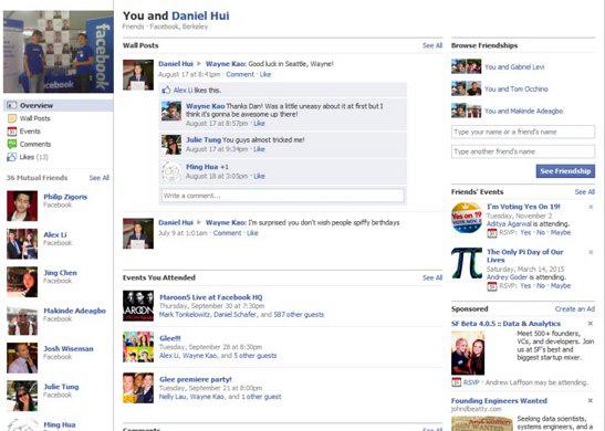 Το Facebook ετοιμάζει και άλλες νέες δυνατότητες- αυτή την φορά είναι οι "σελίδες φιλίας". Σύμφωνα με ένα post στο Facebook blog, οι σελίδες φιλίας θα περιέχουν όλες τις "κινήσεις" που κάνατε μαζί με κάποιον φίλο σας, όπως μηνύματα σε τοίχο, φωτογραφίες που είσαστε και οι δύο tagged, events που πήγατε και οι δύο- και όλα αυτά μέσα σε μία σελίδα. Τις σελίδες αυτές θα μπορούν να τις δουν ουσιαστικά μόνο τα δύο άτομα που αφορούν, ενώ προς το παρών θα είναι μόνο για σχέσεις ή φιλίες δύο ατόμων.