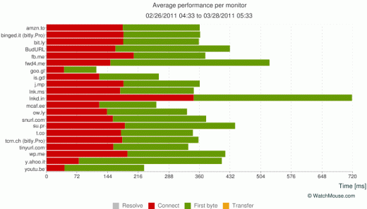 Goo.gl, Bit.ly, T.co, Tinyurl.com είναι μόνο μερικοί από τους δεκάδες URL shorteners που κυκλοφορούν στο διαδίκτυο. Μερικοί όμως από αυτούς, έχουν μεγάλο downtime ή δεν ανταποκρίνονται γρήγορα. Η Whatsmouse WhatchMouse έκανε κάποιες μετρήσεις σχετικά με αυτά, τα αποτελέσματα των οποίων μπορείτε να δείτε παρακάτω.