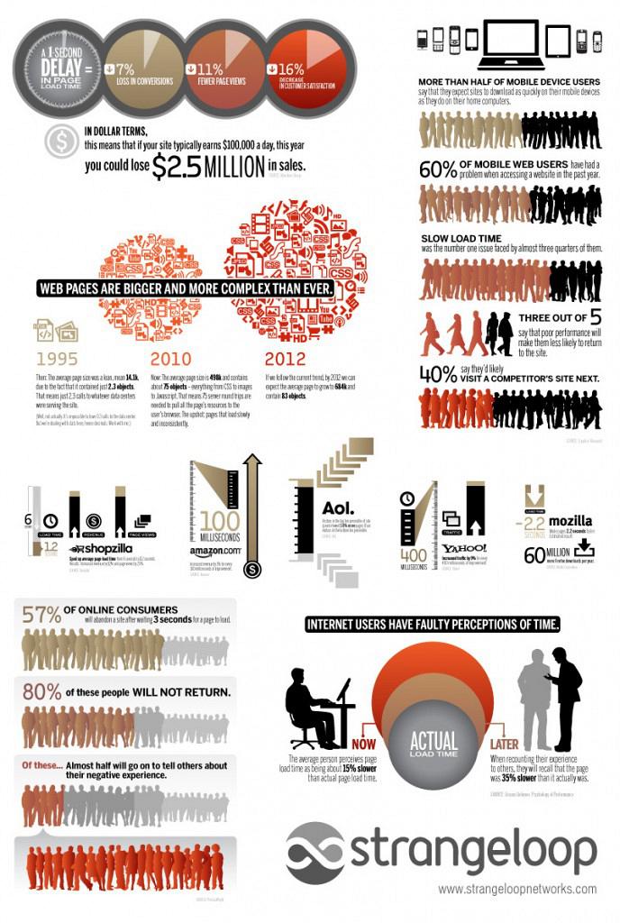 Τα γεγονότα, που απεικονίζονται στην παρακάτω εικόνα, είναι ενδιαφέροντα όμως, ένα είναι αυτό που μας τράβηξε την προσοχή. Φανταστείτε ένα site που έχει 1 δευτερόλεπτο καθυστέρηση στο άνοιγμα του. Έρευνες έχουν δείξει πως αυτό θα οδηγήσει σε 11% λιγότερα pageviews. Αν αυτό το site κερδίζει $100.000 τη μέρα, μία τέτοια καθυστέρηση θα του κοστίσει πωλήσεις $2.500.000 σε ένα χρόνο!