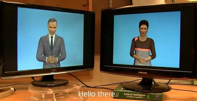 Δεν χρειάζεται να ανησυχούμε ακόμα μήπως τα ρομπότ καταλάβουν τη γη. Ένα δείγμα του τι θα γίνει αν αφήσουμε 2 ρομπότ μόνα τους, παίρνουμε στο παρακάτω video. Μπορεί η συζήτηση που ακολουθεί να έχει σε γενικές γραμμές κάποια λογική, όμως οι αναφορές σε μονοκερούς και ερωτήσεις σχετικά με την ύπαρξη του Θεού προσφέρουν αρκετό γέλιο. Φυσικά, μπορείτε να δοκιμάσετε και εσείς το Cleverbot είτε μέσω web, είτε μέσω iOS/Android στο επίσημο site του.
