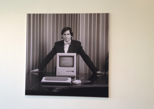 Οι παρακάτω φωτογραφίες που απεικονίζουν τον Steve Jobs και συναντάει κανείς μέσα στο κτίριο είναι πολλές, ξεκινώντας από τις πρώτες μέρες των Mac υπολογιστών και φτάνοντας μέχρι τα τελευταία προϊόντα που δημιούργησε η Apple με αυτόν στο τιμόνι.