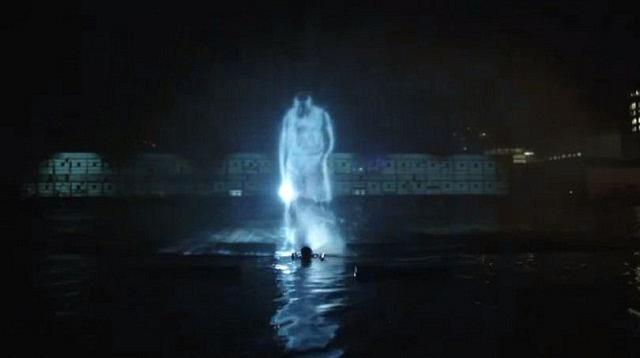 Ξαφνικά τα βλέμματα του κοινού αποσπώνται από ένα ελικόπτερο, το οποίο δίνει σήμα στον deejay να ανεβάσει την ένταση της μουσικής και το water projection, ώστε να αρχίσει η παράσταση.