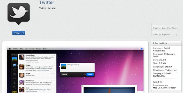Με το νέο update του Mac OS X στην έκδοση 10.6.6 και το Mac App Store, η πρώτη εφαρμογή που ανυπομονούσα να δοκιμάσω ήταν η εφαρμογή του Twitter, το πρώην Tweetie δηλαδή. Η εφαρμογή διατίθεται δωρεάν στο App Store, και η εγκατάσταση της είναι απίστευτα απλή- το μόνο που χρειάζεται είναι να έχετε κάνει login στον λογαριασμό σας iTunes, και να πατήσετε εγκατάσταση.
